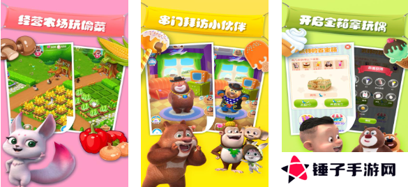 我的熊大熊二是具备经营元素的卡通风格休闲手游,扮演农场主的你可以在森林中开创地盘,通过与动物们进行互动即可通过各种难关,甚至在动物们的帮助下可轻松击退可恶的光头强。这款森系风格农场经营手游佛系十足,耐玩的经营性质和卡通动漫UI交相呼应,还加入了交互偷菜的游戏模式致使可玩性更高。