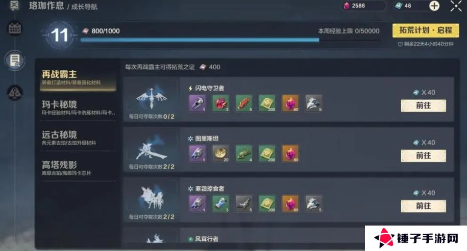 除了常规的每日任务获取阅历外,游戏中还有多种独特的玩法可以帮助玩家快速积累阅历,例如玛卡秘境、远古秘境及高塔残影这四种玩法,都被巧妙地融入了成长导航之中,这些玩法不仅充满挑战乐趣,还能让玩家在消耗体力的同时,获得对应的丰厚奖励。