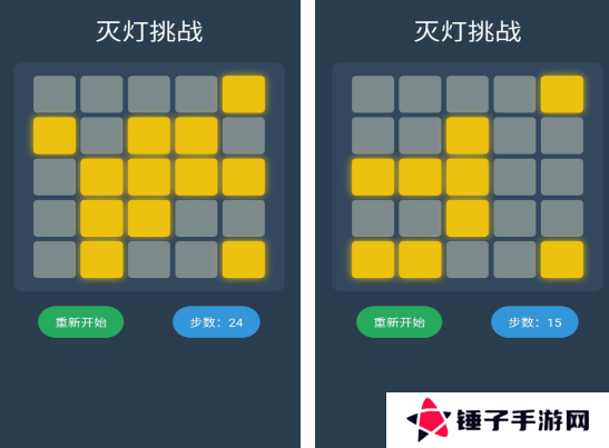 此游戏是以灭灯来完成挑战的,作为经典的小游戏。如果你没有了解规则的情况下,是很难完成任务的,但在玩前只要仔细观察,使用策略性,基本上就能顺利完成挑战。利用点击方块,通过将横竖格位置的灯进行旋转,能顺利的将所有的灯全部消灭以后,就可以完成挑战。拥有创意性的玩法,需要你在规定的步数内完成闯关。