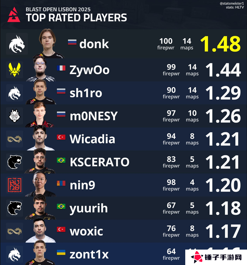 数据统计:donk登顶里斯本rating榜,malbsMd为爆头王
