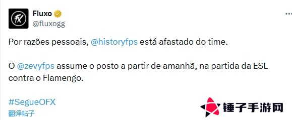 Fluxo战队官方发布声明,zevy正式回归主力阵容,接替因"个人原因"离队的history。