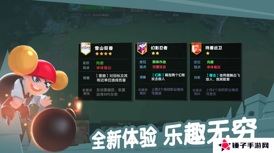这款游戏的大致玩法与自走棋游戏类似,但在此基础上又做出了一些升级和改变,比如说小伙伴们获得资源的方式会变成摸牌,如果想要升级某一张卡牌的话,可以把其余无用的卡牌卖掉,这样同样也能够获取经验,同时也能够尽量的去掉一些废卡。如果你想要把卡牌上的角色进行升级,则是需要消耗任意三张与他点数相同的卡牌。