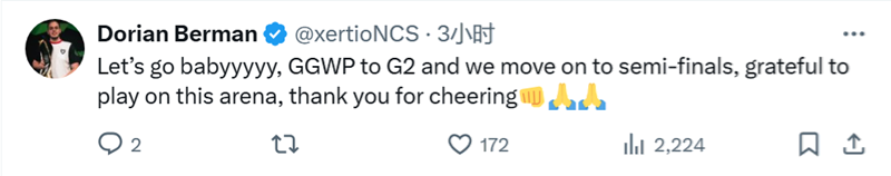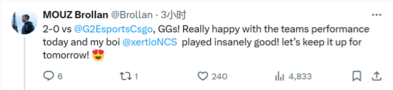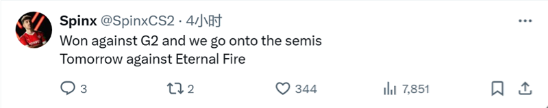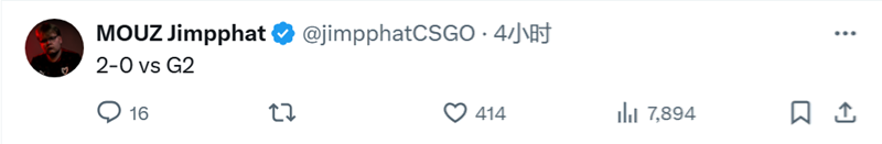 G2和MOUZ战队部分选手分享了自己的赛后动态。
