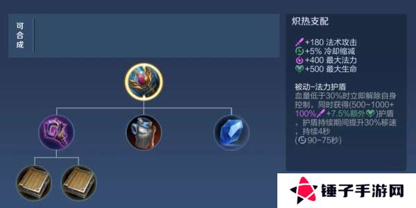 被动效果:护盾值满级时上调500点和7.5%额外生命、下调0.5AP加成,满级冷却时间缩短15秒。