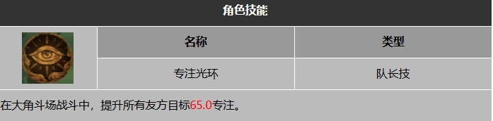 在游戏设定里托维尔的定位是一名坦克,别看它外形十分迷你给人一种小巧玲珑的感觉,可实际上它的抗伤效果却相当出色,当托维尔处于一级的时候,就拥有了专注光环和猎物锁定这两个实用技能,其中专注光环作为队长技,只有在大角斗场这个特定的战斗场景中使用,才能充分发挥出其强大的效果,一旦释放该技能,队友们的专注值都会得到提升。
