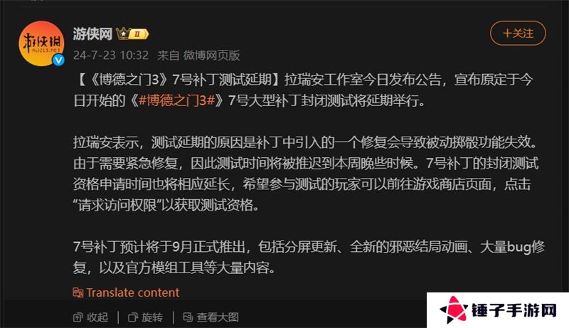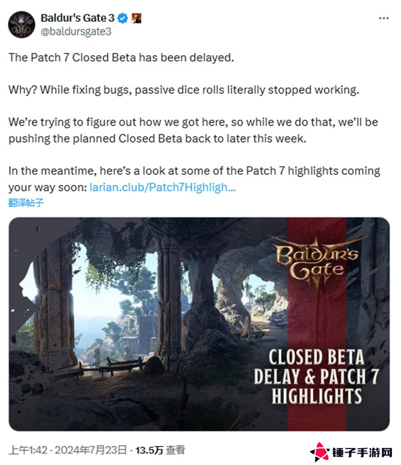 技术问题导致博德之门3 7号补丁内测推迟!拉瑞安工作室近日宣布,由于遇到技术上的一些挑战,博德之门3的第七个补丁内测计划将推迟至本周稍晚时间进行。工作室正全力解决这些问题,以确保补丁的质量和稳定性。同时,他们还邀请更多的参与者加入内测团队,共同帮助测试和反馈,以便尽快完善并发布这一重要更新。